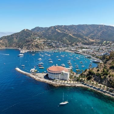 Catalina Island is a scenic Channel Island located 22 miles off the Southern California coast. Famous for its Mediterranean climate, rugged wilderness managed by the Catalina Island Conservancy, and charming seaside city of Avalon, it offers popular activities like snorkeling, kayaking, and golf cart tours.